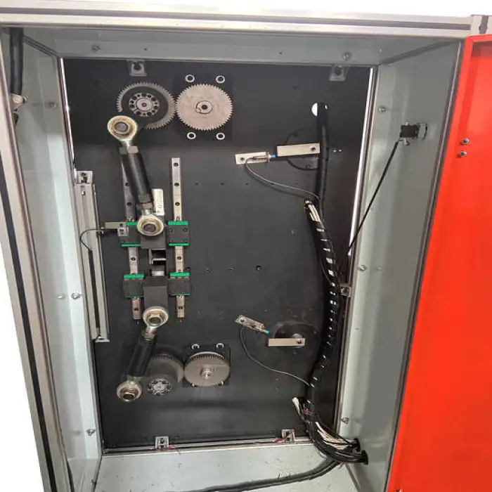 The machine is equipped with an advanced heating system that includes an upper heating plate with up/down contacts for optimal fabric pleating.