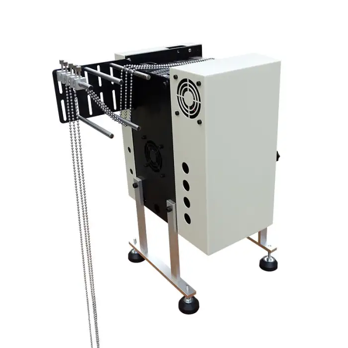 The cutting machine uses an AC motor for the cutter and a stepper motor for feeding.