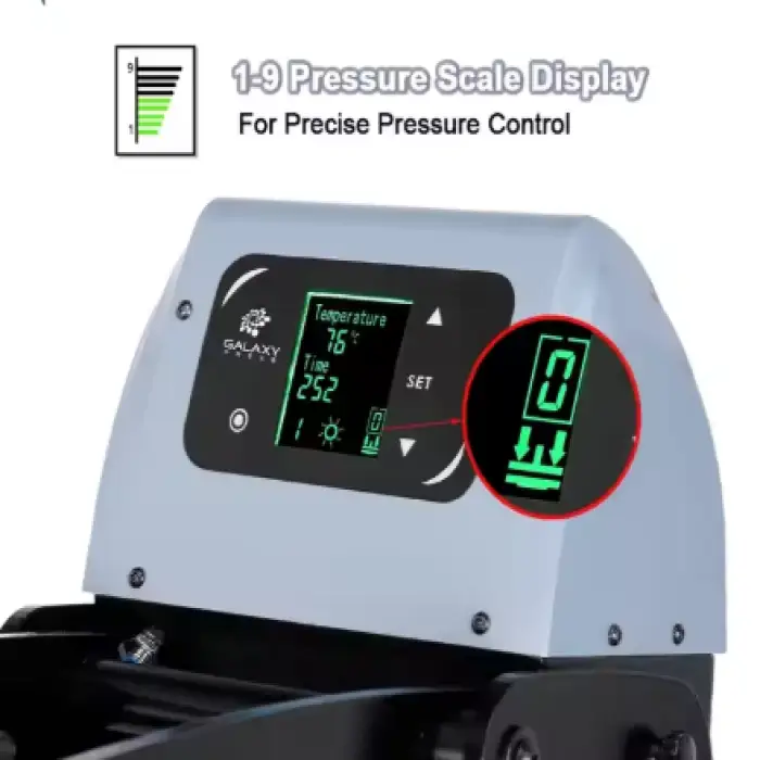 Yes, the Galaxy Auto Clam Heat Press Machine includes a pressure display to help you set and monitor the pressure during operation.