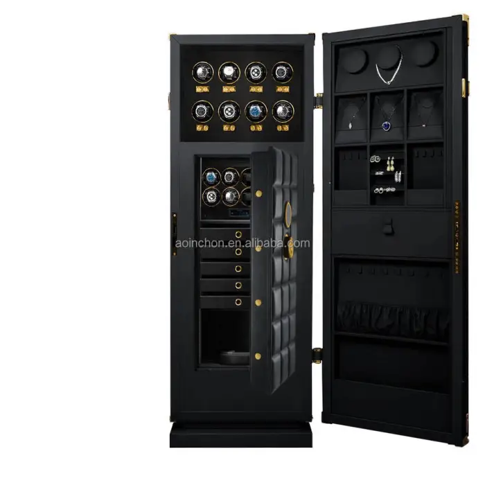 The Genuine Leather Water-proof Fireproof Watch Winder Jewelry Storage Safe is made from high-quality genuine leather, ensuring both elegance and durability.