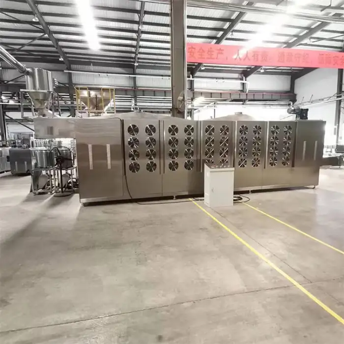 The machine has a production capacity of 250 kg/h, making it suitable for high-demand food production.