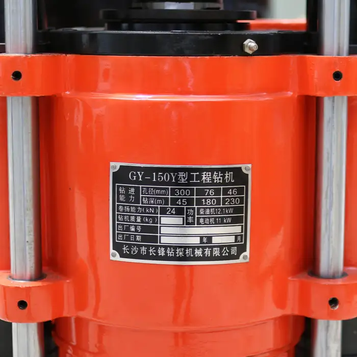 The Gy-150 HB Diamond Core Drilling Rig has a maximum drilling depth of 150 meters.