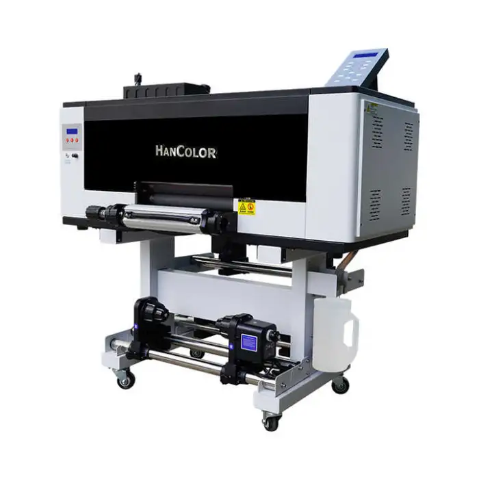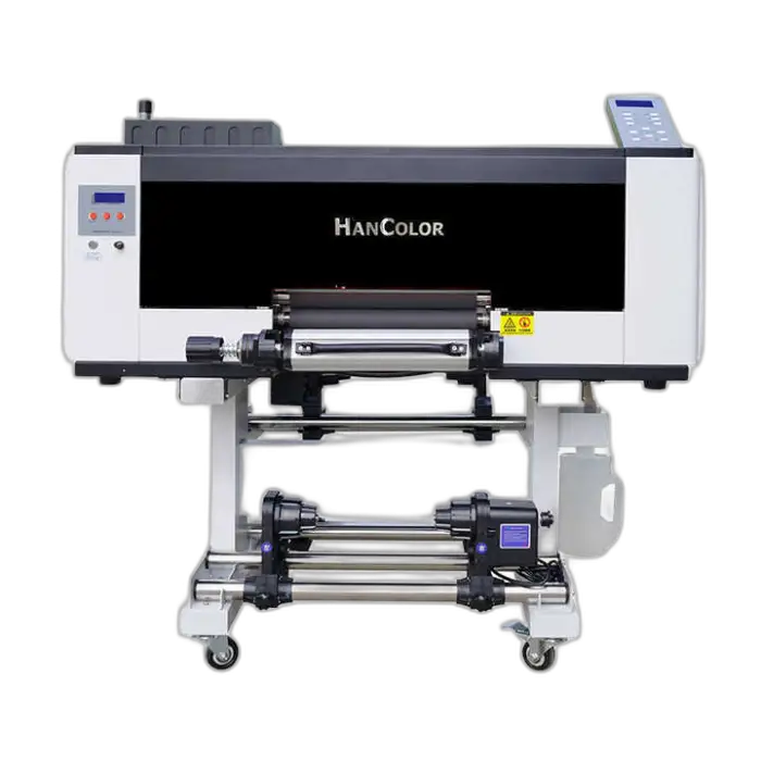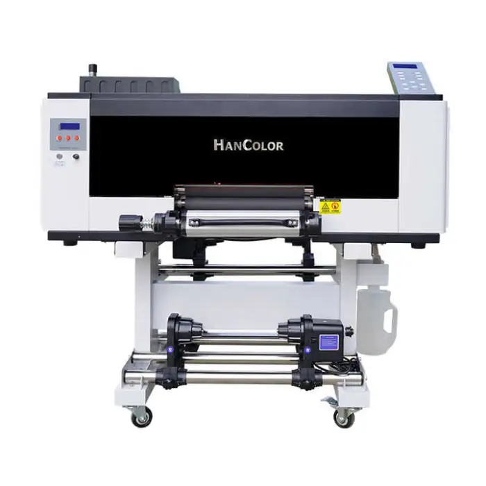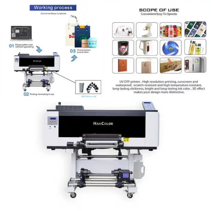 This UV DTF unit is designed to print onto PET transfer film (DTF film) and can produce transfers for fabrics. It is also suitable for producing labels, decals and laminated prints for items like phone cases and bottles. For direct printing on rigid or highly curved objects you may need additional fixturing or secondary finishing processes.