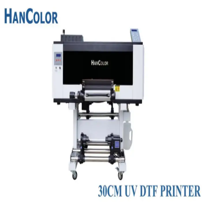 The printer has a maximum printing width of 300 mm (30 cm), suitable for small-format labels, phone case wraps, bottle labels and PET transfer film.