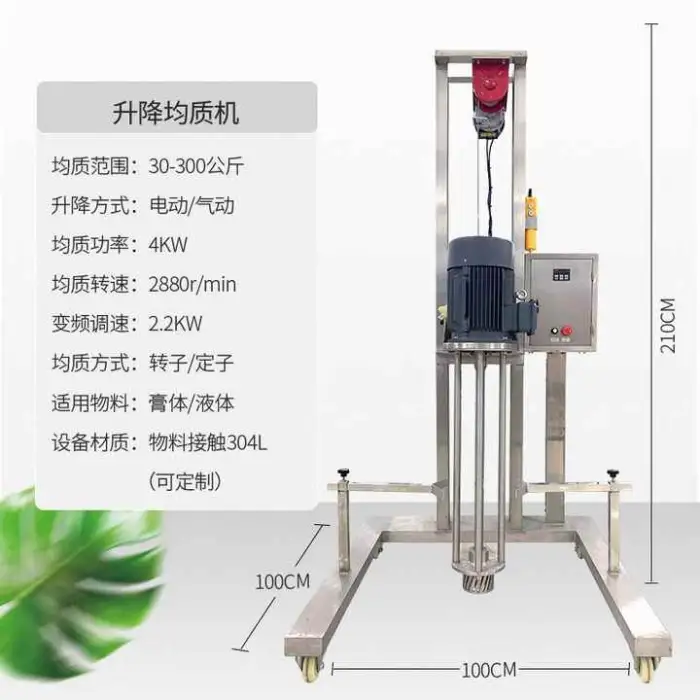 The machine uses a homogenizer mixer type, which ensures smooth blending of materials.