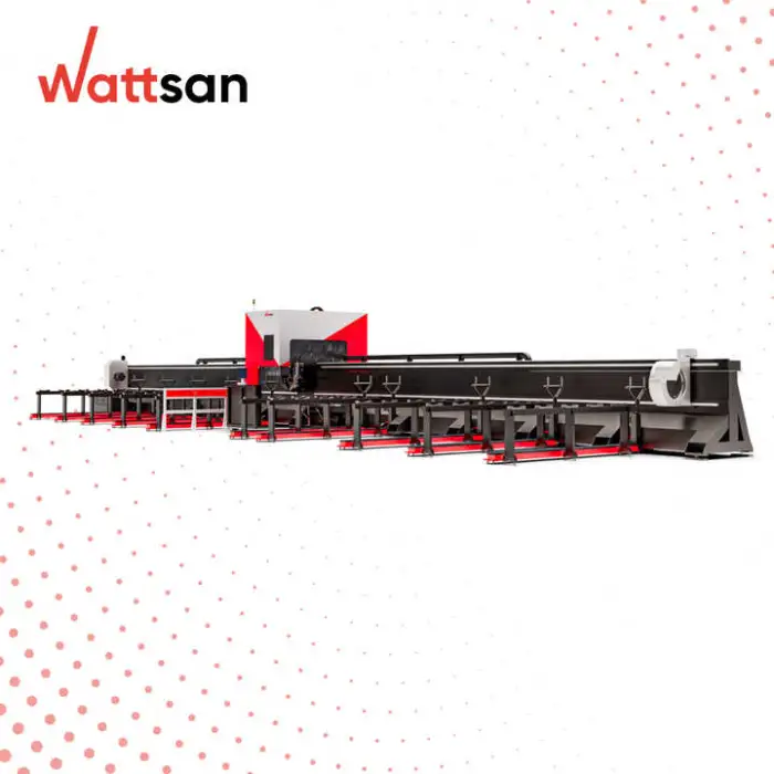 The WATTSAN Heavy Duty Cut Pipes Laser Cutting Machine uses a fiber laser type, which is known for its precision and efficiency.
