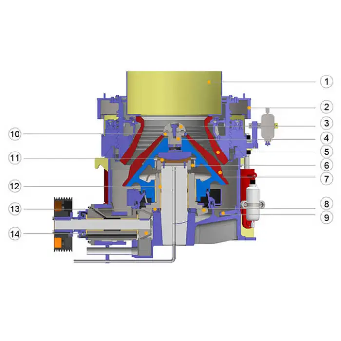The High Capacity Multi Cylinder Basalt Limestone Hydraulic Cone Crusher can process between 135 to 630 tons per hour.