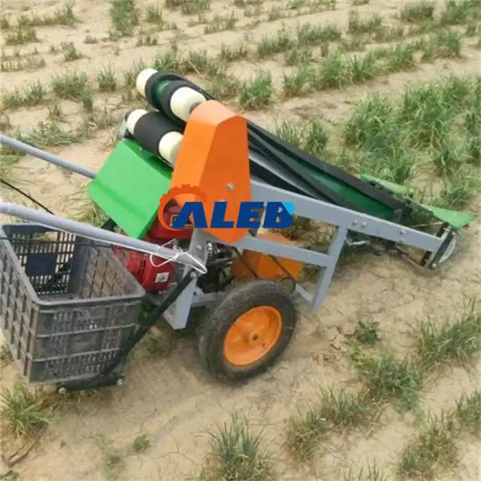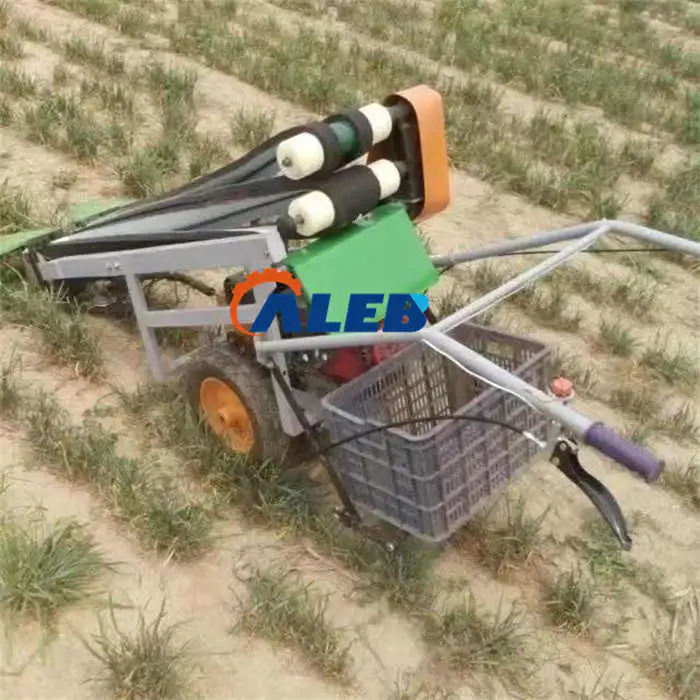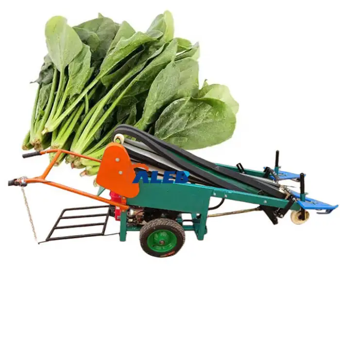 This harvester machine is designed for efficient harvesting of leafy vegetables such as leeks, celery, spinach, garlic chives, and parsley.