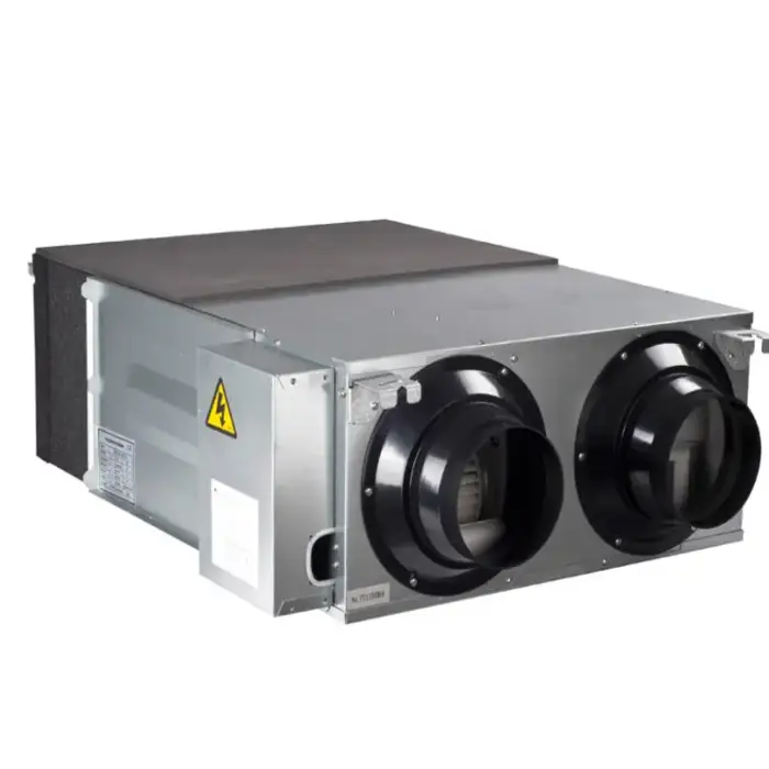 The cross-counterflow heat exchanger efficiently transfers heat, optimizing energy usage and helping to maintain a comfortable climate within the space.