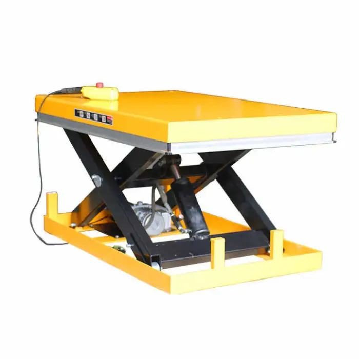 The lift table uses a hydraulic drive system for efficient lifting.