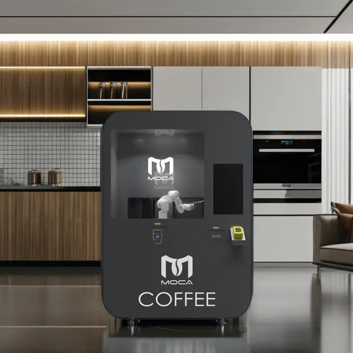 The pneumatic manipulator uses advanced technology to automate the coffee-making process, ensuring precision and speed.