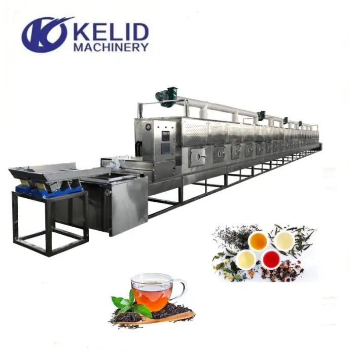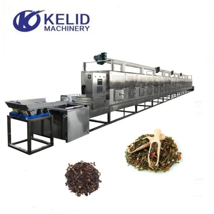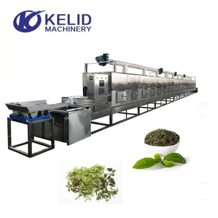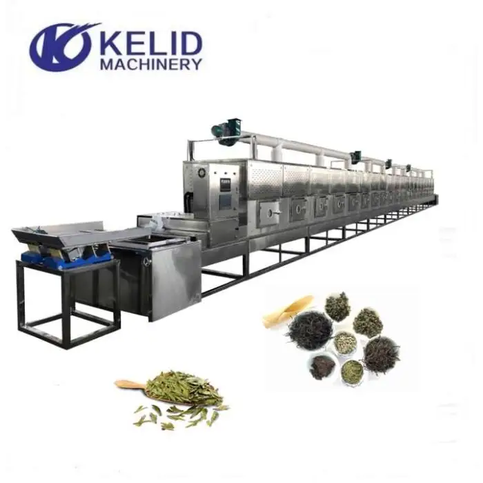 The Industrial Tunnel Conveyor Belt Microwave Tea Leaves Herb Leaf Dehydrator is designed to dry tea leaves, herbs, vegetables, fruits, and is also suitable for chemical processing.