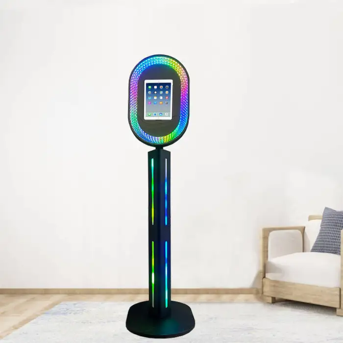 The photo booth offers multiple connectivity options, including USB, Wi-Fi, Bluetooth, NFC, and HDMI.