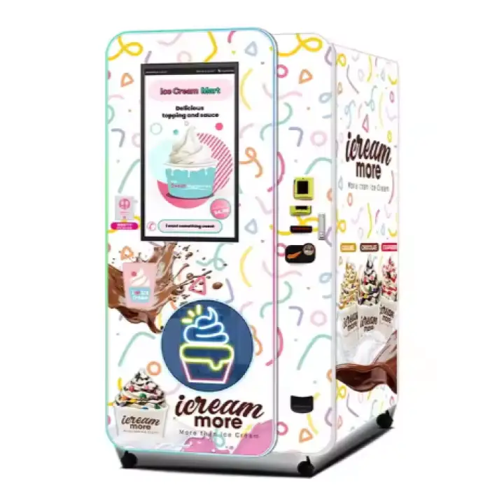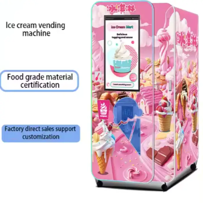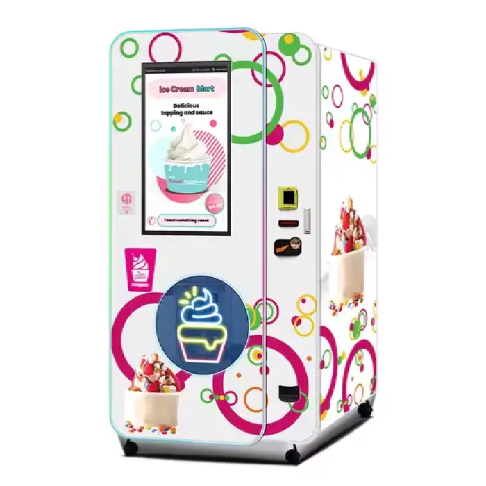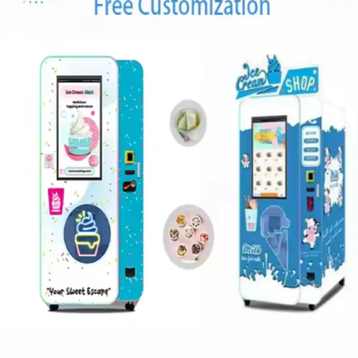 The fully automated system allows for quick production, typically taking just a few minutes to create ice cream.