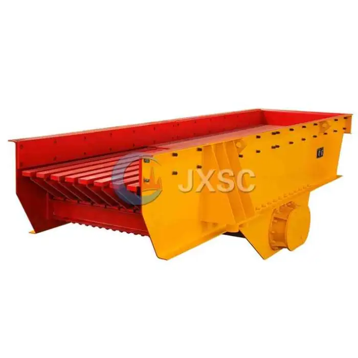 The JXSC Ore Sand Mining Feeding Machine features a durable construction designed for long-lasting use.