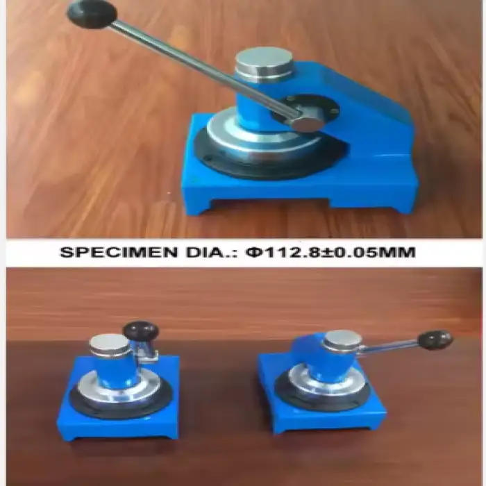 The machine cuts samples with a diameter of 112.8 mm ±0.05 mm, ensuring high precision for measurements.