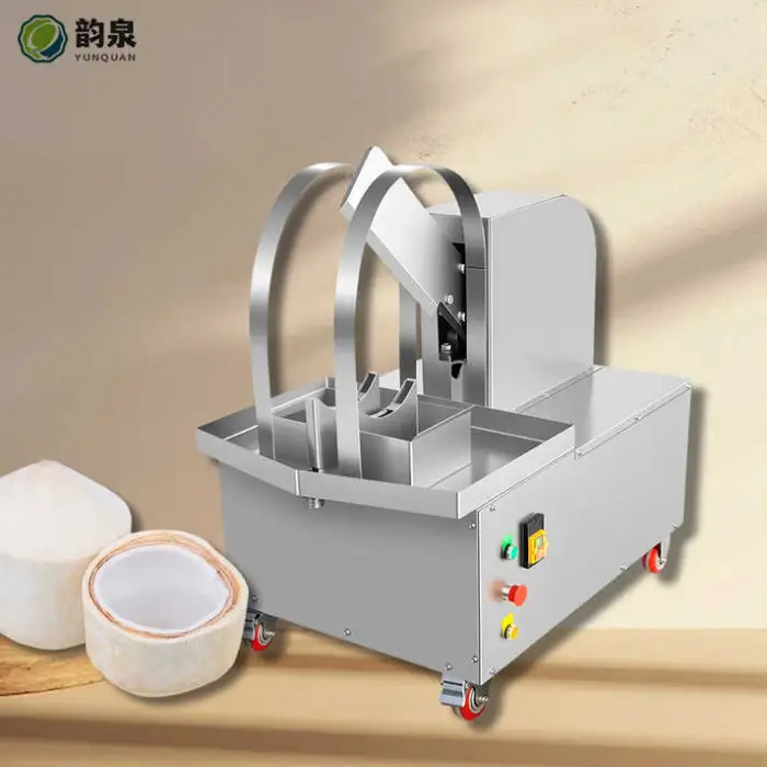The machine is designed for high efficiency, allowing for quick and effortless coconut opening.