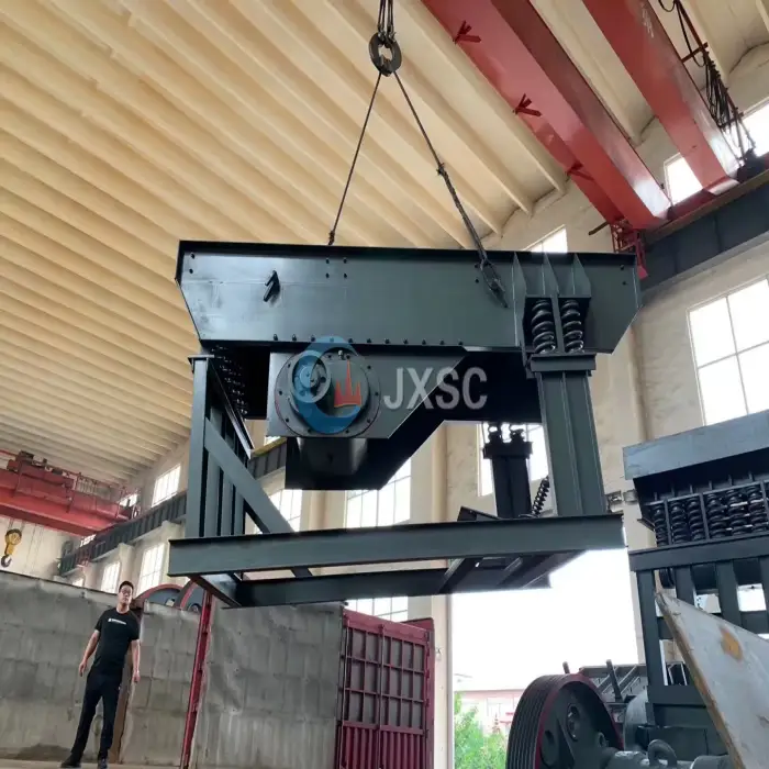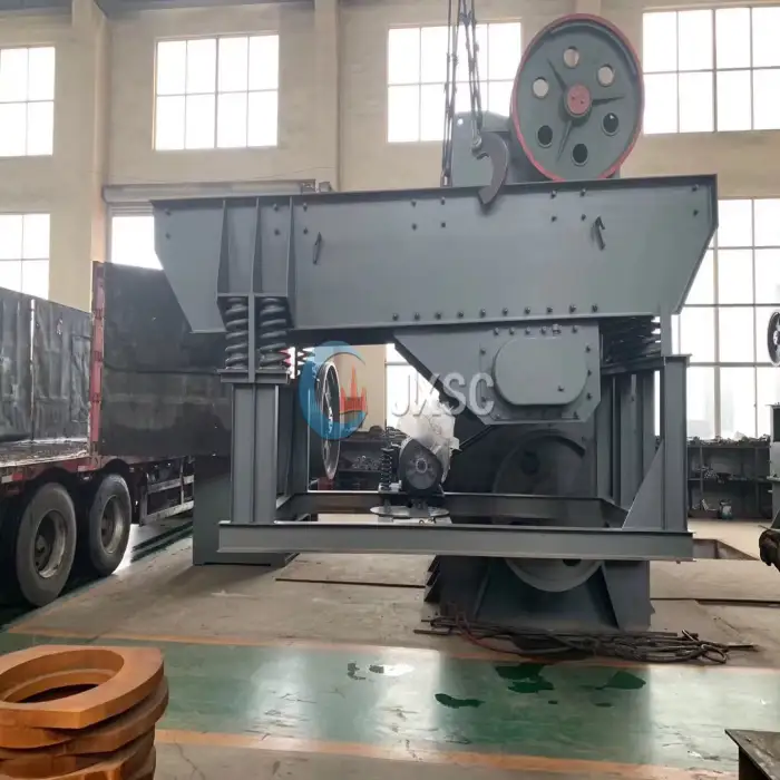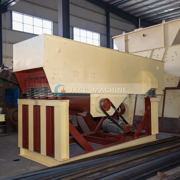 This feeder can handle a wide range of materials including stones, aggregates, and various minerals.
