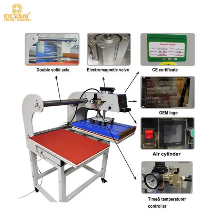 This machine is designed for sublimation printing, making it ideal for polyester fabrics and special sublimation-coated materials.