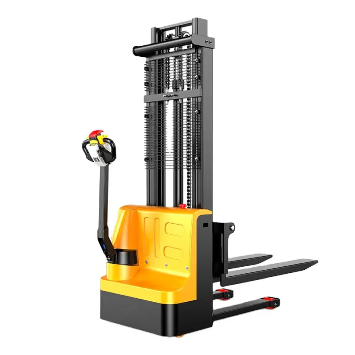 The description notes "safety features" but does not list specifics. Typical electric stacker safety features include emergency stop, overload protection, safety horn, deadman/handle switch and parking brake. Ask the supplier for a complete list of included safety systems and compliance certificates.