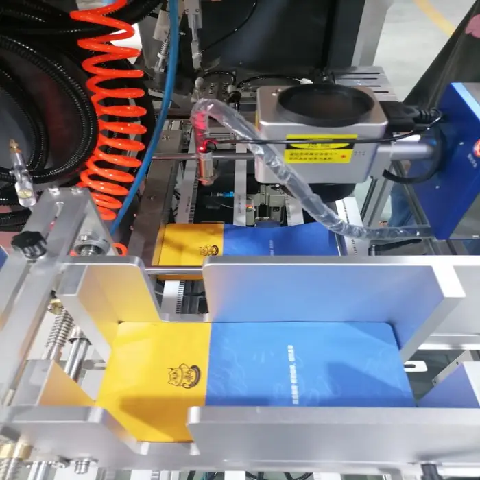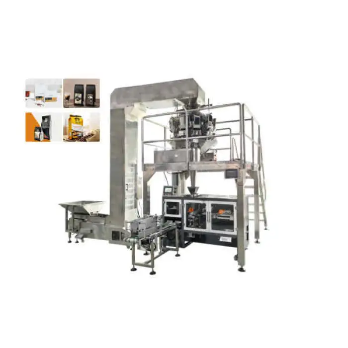 Key features include high-speed automatic filling and sealing, suitability for various materials, durable construction, and efficient packing speed.