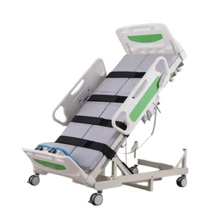 The bed is suitable for various rehabilitation therapies, particularly for patients transitioning to a standing position or requiring customized support during recovery.