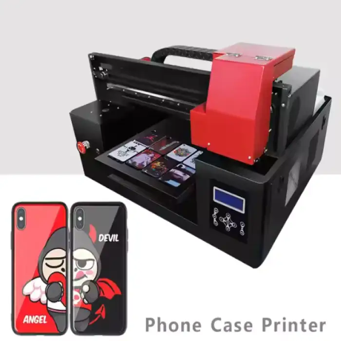 The printer is designed for a wide range of flat substrates including cell phone cases, metal, wood, acrylic, glass, ceramic tiles, foam board and similar materials. For unusual substrates or highly textured surfaces, test prints are recommended and you can consult the supplier for compatibility guidance.