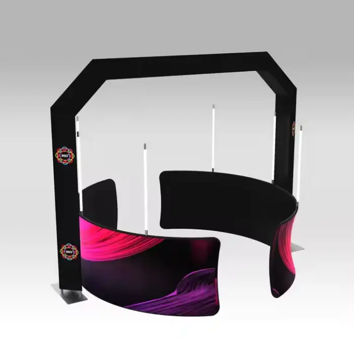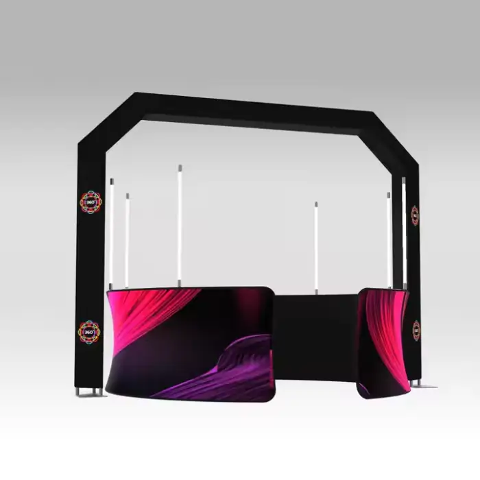 Heat transfer printing is specified for logos and graphics. For other printing options or fabric/backdrop materials, ask the supplier for available print finishes and fabric types.