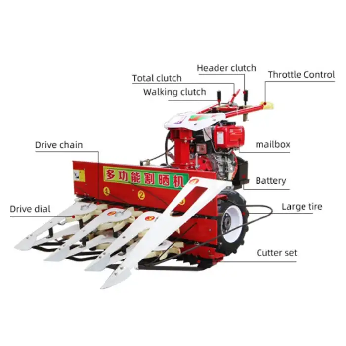 The Mini Harvester Machine enhances harvesting efficiency through its powerful engine, compact design, and ability to handle multiple crop types.