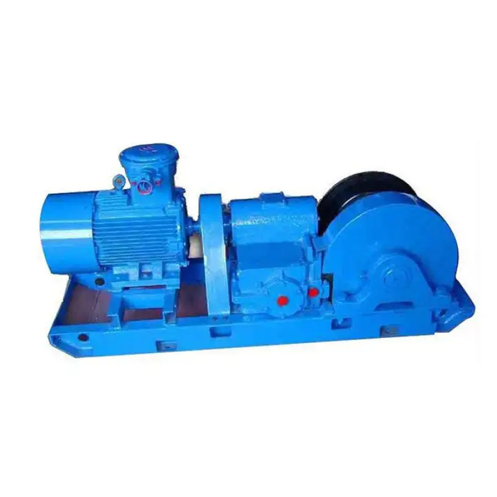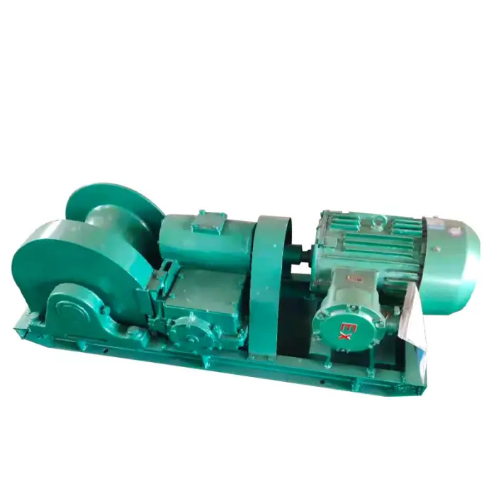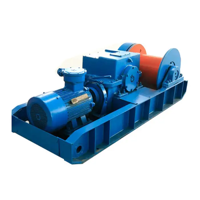 The winch features an optional explosion-proof motor and a robust construction to ensure safety during operation in underground environments.