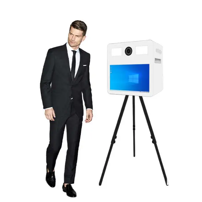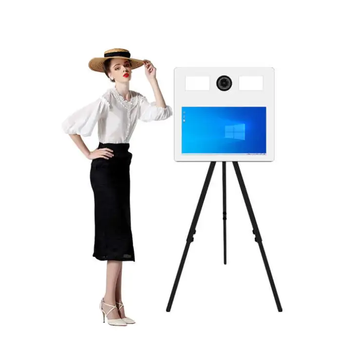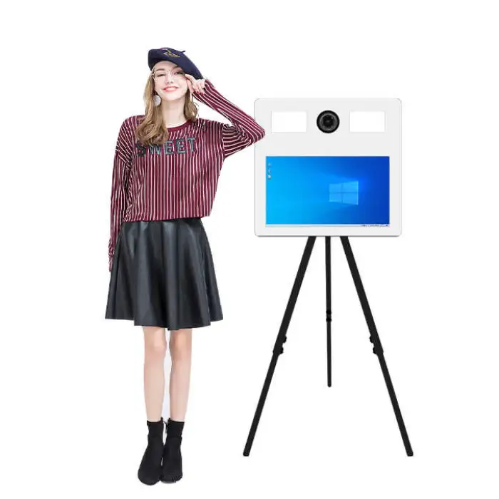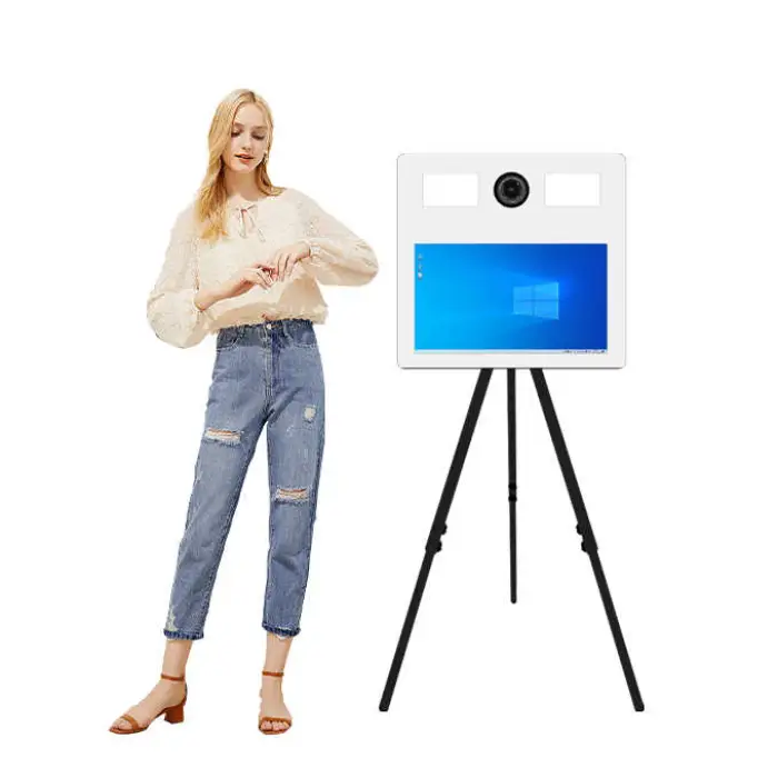 The Mirror Photo Booth features a 21.5-inch portable touch screen.
