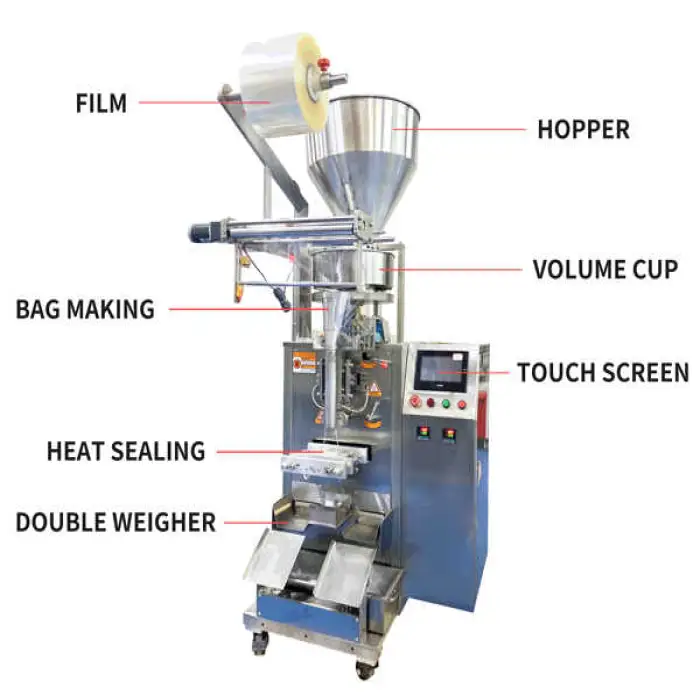 The Multi-function Automatic 1kg Bag Salt Packing Machine is made from 304 stainless steel, ensuring durability and hygiene.