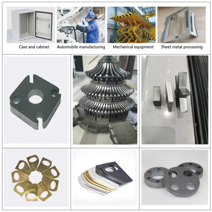 Common applications include metal sheet cutting for automotive parts, fabrication of metal components, custom metal designs, production of metal frames, and prototype development.