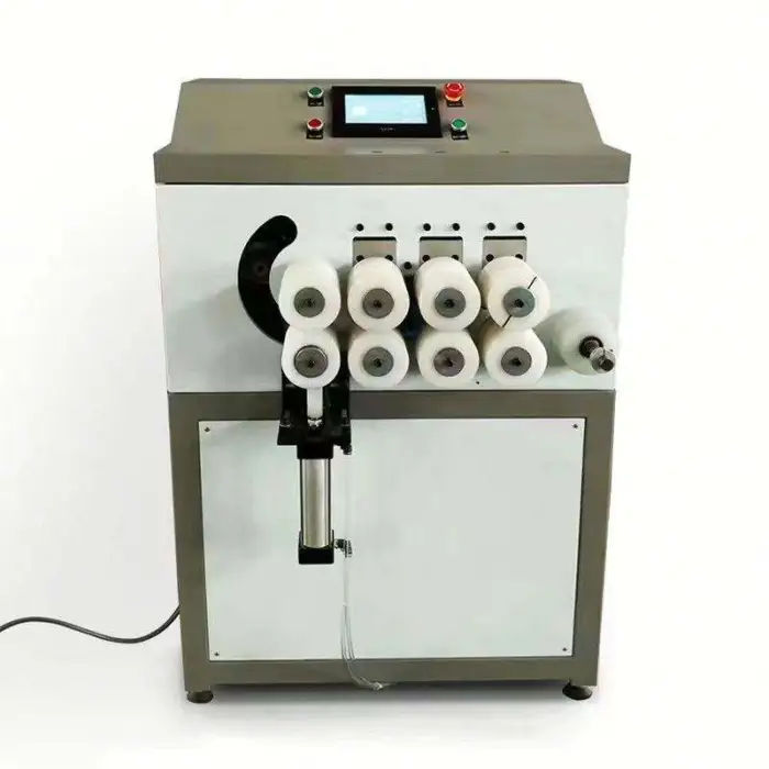 The machine is designed with safety features such as emergency stop buttons and protective covers to ensure safe operation.