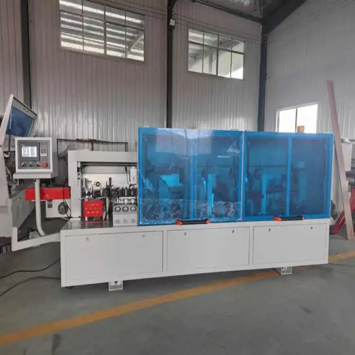 The machine includes end trimming and fine trimming functions to ensure a precise finish on the edges.