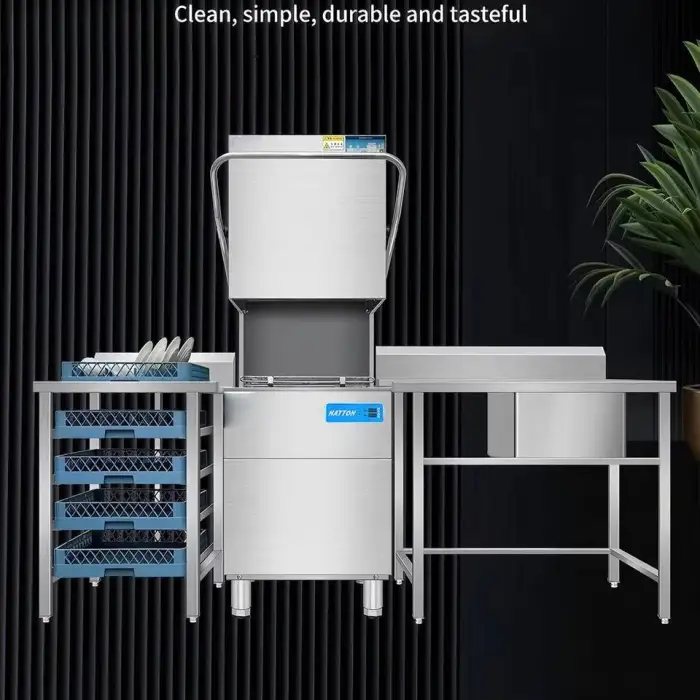This dishwasher is ideal for restaurant kitchens, canteens, hotel kitchens, food stores, and large-scale catering services.