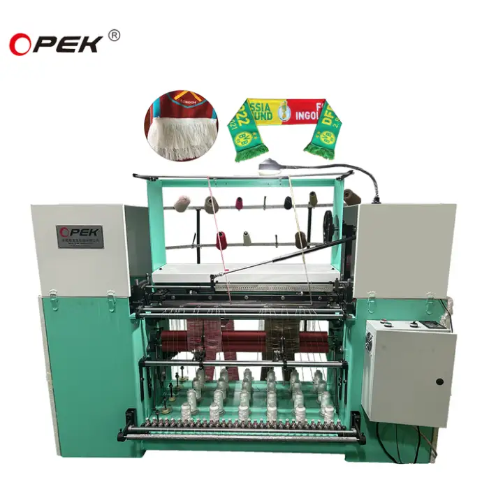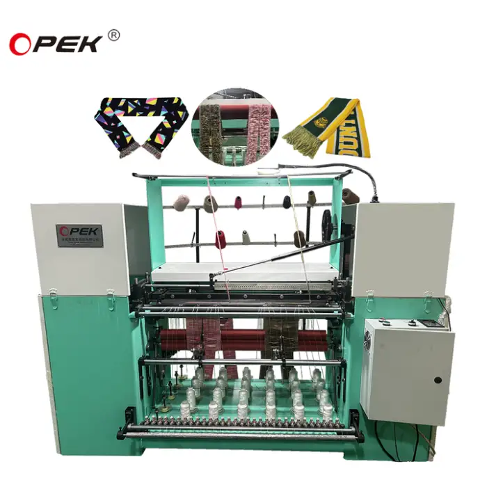 The OPEK High Speed Arrived Shawl Scarf Tassel Fringe Crochet Machine has a production capacity of 2 meters of tassels per minute.