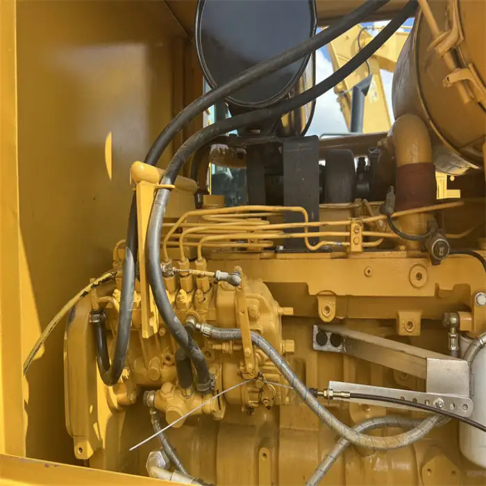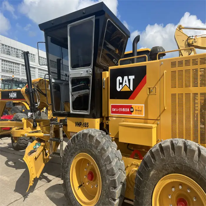 The engine brand used in this motor grader is CAT (Caterpillar).