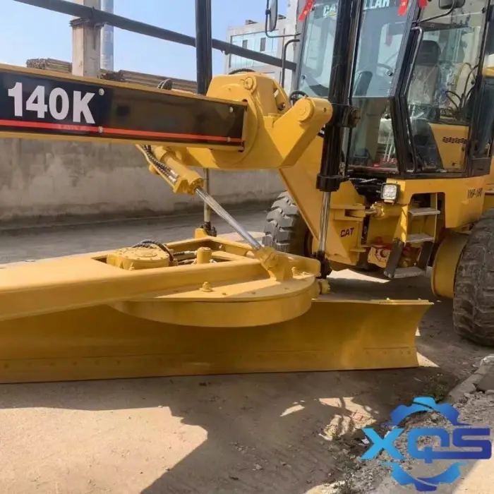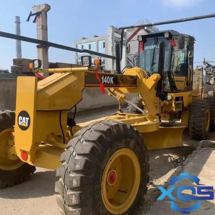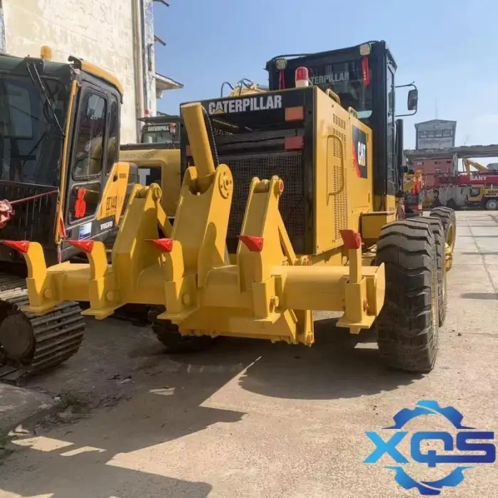 Key features include a high-performance Caterpillar engine, durable construction, and efficient grading and leveling capabilities.