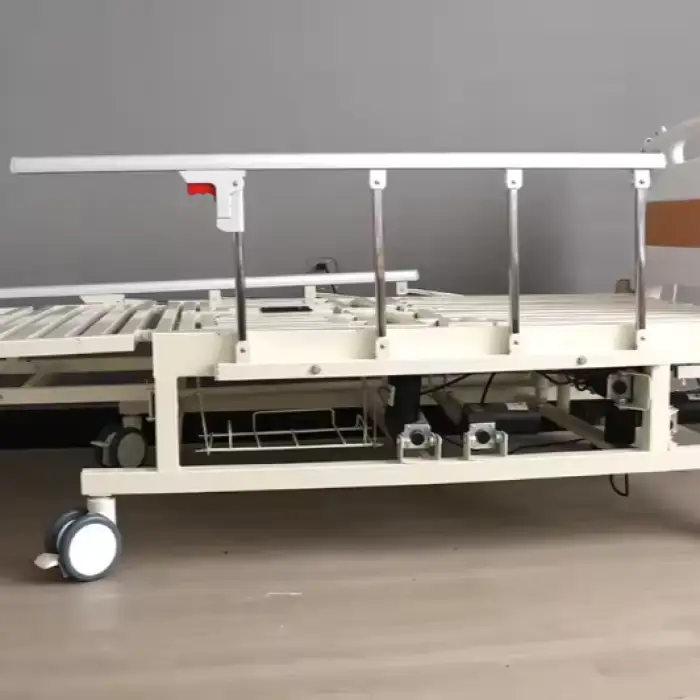 The bed provides five electrically adjustable functions to improve positioning and comfort β typically including head up/down, foot up/down, an adjustable knee/leg segment, and overall bed height adjustments. Exact function mapping can vary by model, so confirm the specific functions and handset layout with the supplier.