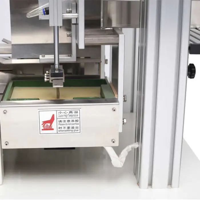 The machine uses hot melt glue for sealing boxes securely and effectively.