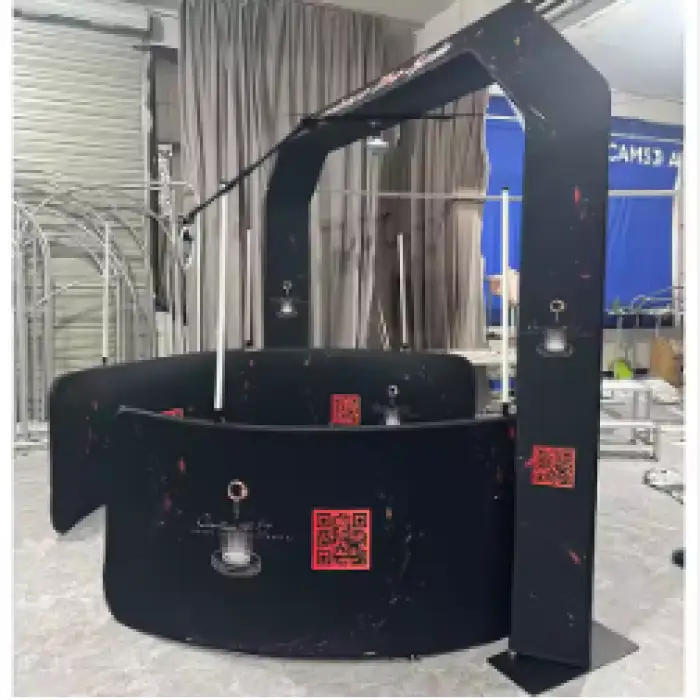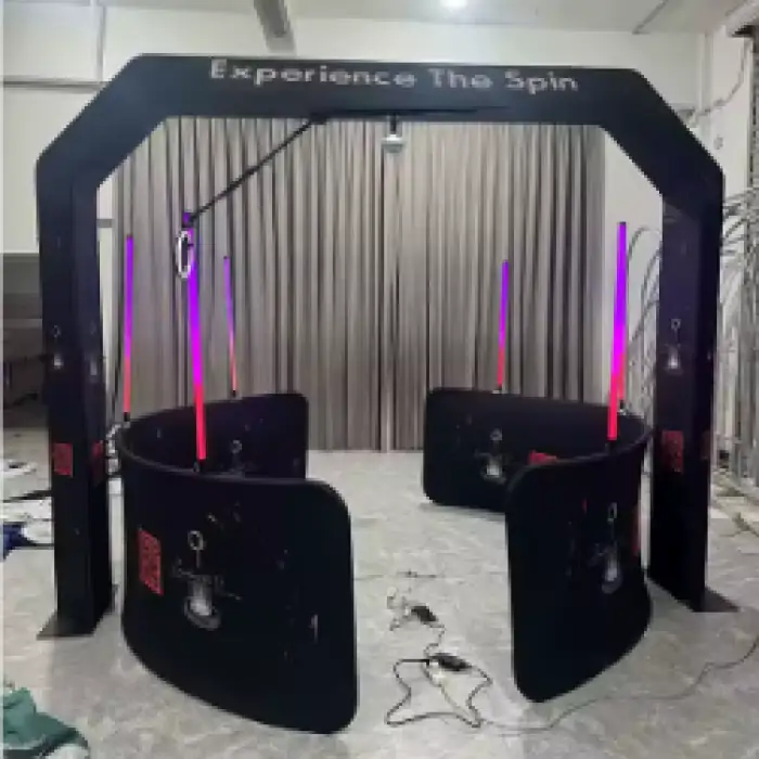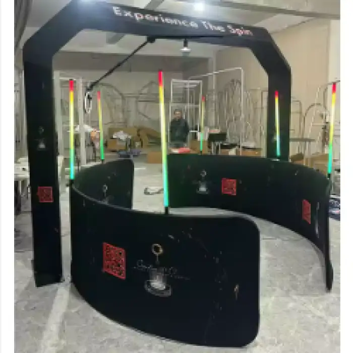 The Overhead Photo 360 Booth is a photobooth designed to capture stunning 360-degree photos and videos using advanced technology, featuring an LED fill light and a sky top spinner.