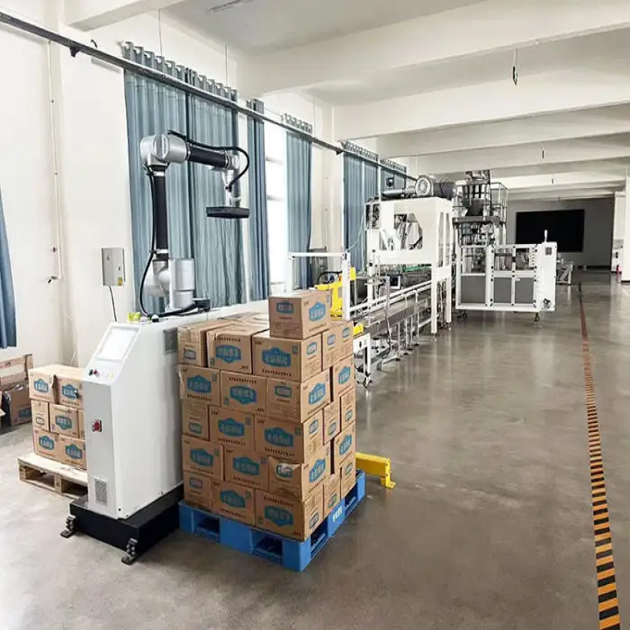 It is suitable for automated palletizing in warehouses, efficient loading onto pallets, assisting in manufacturing assembly lines, and improving productivity in logistics operations.