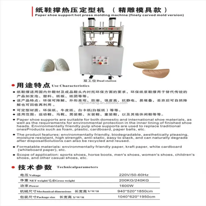 The machine is designed primarily for use with paper materials to create molds for shoe supports.