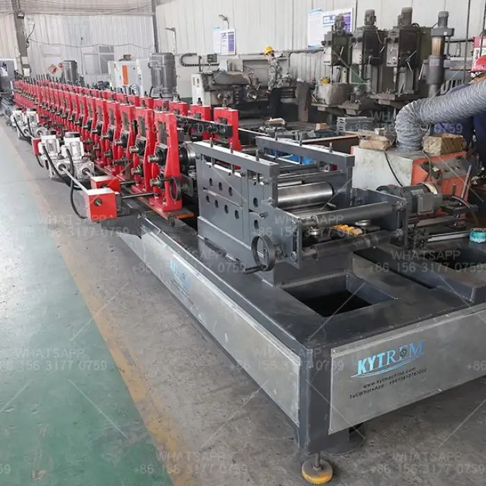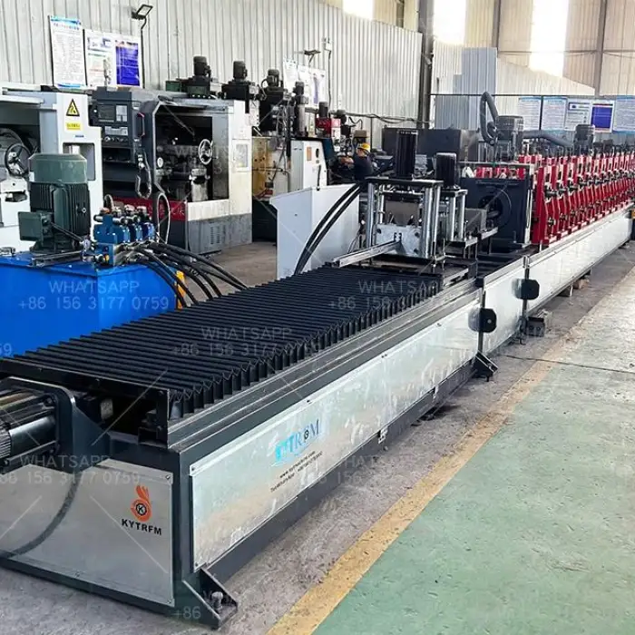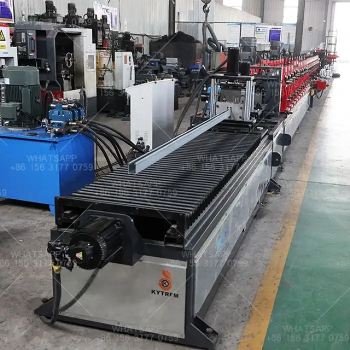 The Solar Photovoltaic Bracket Forming Machine features efficient hydraulic cutting technology, providing clean and precise cuts for the steel brackets.