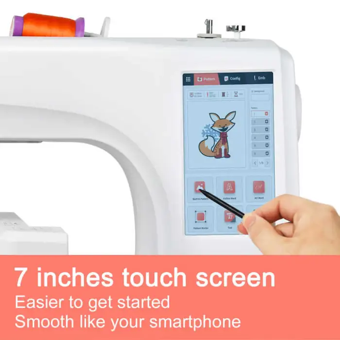 The electronic tension adjustment feature ensures perfect stitching for various fabrics and thread types.