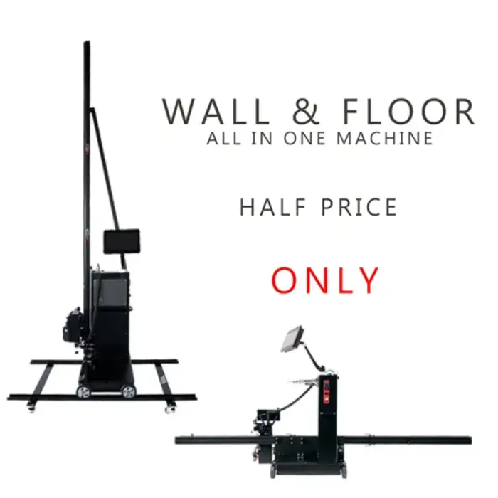 The printer is designed to print on both walls and floors, making it versatile for various applications such as advertising, murals, and floor graphics.