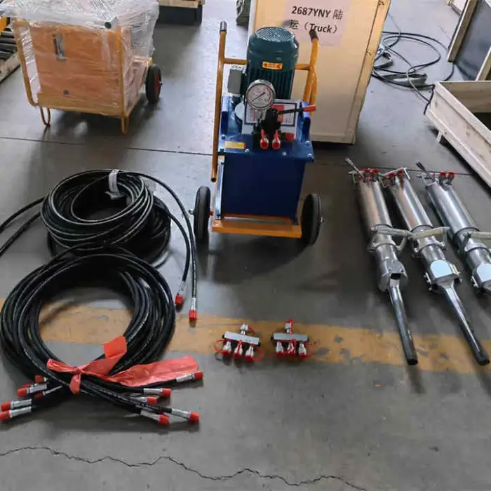 The machine is designed for splitting large stone blocks, reinforced concrete, and is suitable for mining, construction, and landscaping.
