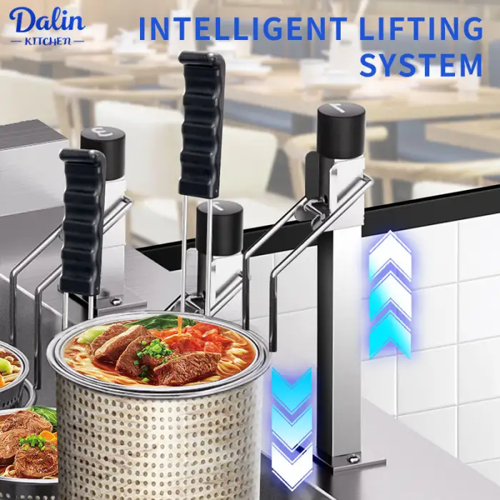 The Professional Gas Noodle Lifting Cooker is made from high-quality 304 stainless steel, which is durable and easy to clean.