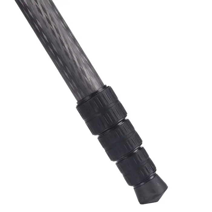 The tripod is made from durable carbon fiber, which provides strength while keeping the weight low.